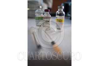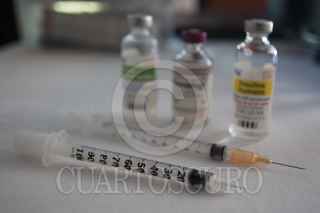 MÉXICO, D.F., 31JULIO2012.- Muestras de Insulina Humana durante una muestra de una nueva jeringa de 6mm para la aplicación de este hormona que se usa en el tratamiento de la diabetes. FOTO: MOISÉS PABLO /CUARTOSCURO.COM