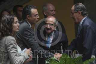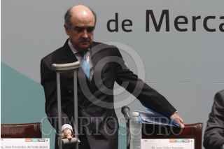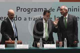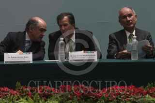 MÉXICO, D.F., 31JULIO2012.- Luis Téllez, Presidente del Consejo y Director General de la Bolsa Mexicana de Valores junto a José Antonio Meade Kuribreña, Secretario de Hacienda y Credito Publico y Francisco Javier Mayorga, titular de SAGARPA durante la presentación del Programa de Administración de Riesgos de Mercado a través de intermediarios financieros. FOTO: ENRIQUE ORDÓÑEZ /CUARTOSCURO.COM