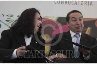 MÉXICO, D.F., 31JULIO2012.- Consuelo Sáizar, presidenta de la CONACULTA; y Gustavo Merino, director general de Financiera Rural; firmaron un convenio de apoyos de capital semilla para micro y pequeñas empresas culturales. FOTO: IVAN STEPHENS /CUARTOSCURO.COM