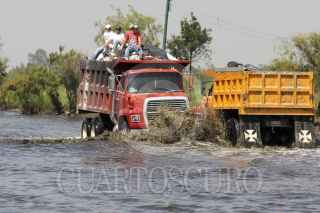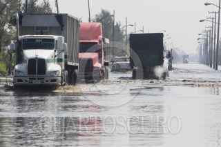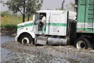 MÉXICO, D.F. 01AGOSTO2012.- Los accesos al bordo poniente continúan anegados de agua, debido a las fuertes lluvias que azotaron la capital y la zona metropolitana. Los camiones de transferencia comenzaron a tirar los desechos durante las primeras horas de hoy. FOTO: SAÚL LÓPEZ /CUARTOSCURO.COM
