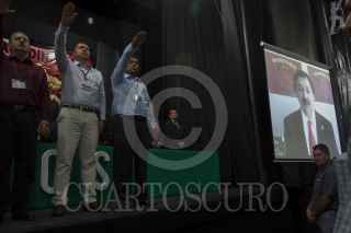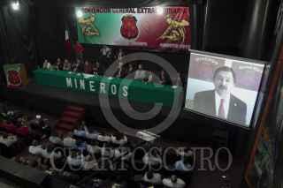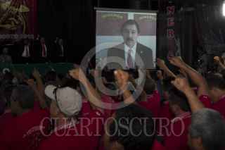 MÉXICO D.F., 01AGOSTO2012.- La imagen de Napoleón Gómez Urrutia, Secretario General del Sindicato Nacional de Mineros vista en una pantalla durante la Sesión Inaugural de la Convención General Extraordinaria del Sindicato Nacional de Mineros. FOTO: GUILLERMO PEREA /CUARTOSCURO.COM