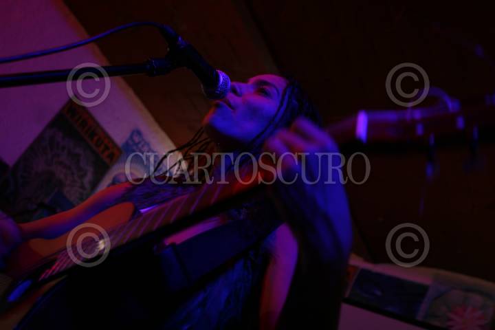 MÉXICO, D.F.;02AGOSTO2012.- La cantante Mamselle Ruíz, presentó la noche de ayer en Casa Hilavana ubicada en la Colonia Condesa, su disco "Maíz". Mamselle es una cantante, compositora e intérprete mexicana instalada en Canadá, premiada en diferentes ocasiones por sus representaciones en vivo. Inspirada en el mestizaje musical norte-sur, desde la trova de Silvio Rodríguez, Mercedes Sosa, Amparo Ochoa, así como las enseñanzas de las culturas y las muejres de la provincia de Quebec Canadá. FOTO: FRANCISCO RODRÍGUEZ /CUARTOSCURO.COM