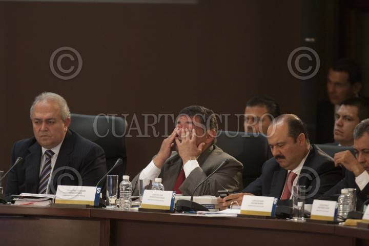MÉXICO D.F., 02AGOSTO2012.- José Antonio Meade Kuribreña, secretario de Hacienda y Crédito Público, Genaro García Luna, secretario de la Seguridad Pública Federal, y Guillermo Galván Galván, secretario de la Defensa, durante la XXXIII Sesión del Consejo Nacional de Seguridad Pública en el Palacio Nacional. FOTO: MOISÉS PABLO /CUARTOSCURO.COM