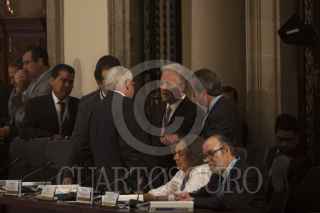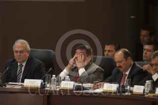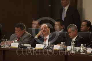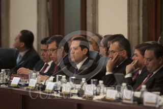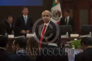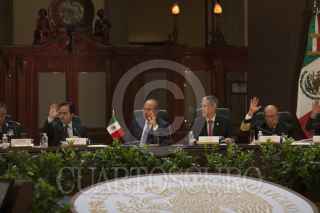 MÉXICO D.F., 02AGOSTO2012.- José Antonio Meade Kuribreña, secretario de Hacienda y Crédito Público, Genaro García Luna, secretario de la Seguridad Pública Federal, y Guillermo Galván Galván, secretario de la Defensa, durante la XXXIII Sesión del Consejo Nacional de Seguridad Pública en el Palacio Nacional. FOTO: MOISÉS PABLO /CUARTOSCURO.COM