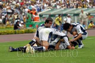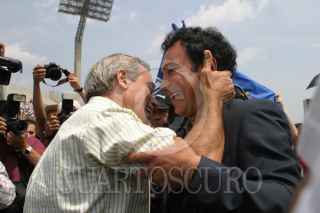 MEXICO, D.F. 10ABRIL2005.- Los directores técnicos del Puebla y de los Pumas de la UNAM, Roberto Saporiti y Hugo Sánchez, respectivamente antes de iniciar el juego de la fecha 12 del Campeonato Clausura 2005 en el estadio Olímpico. FOTO: Sandra Perdomo/CUARTOSCURO.COM