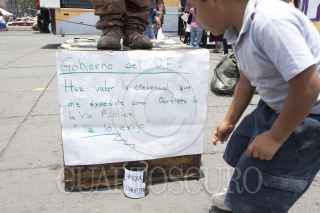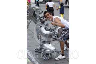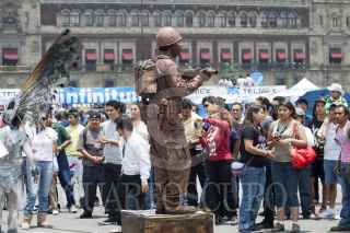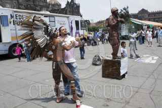 MÉXICO, D.F., 04AGOSTO2012.- Estatuas vivientes realizaron una protesta en la explanada del Zócalo para que las autoridades del gobierno del DF los deje continuar con su actividad en la vía pública, decenas de personas se detenían a observarlos y tomarse la foto del recuerdo. FOTO: MOISÉS PABLO /CUARTOSCURO.COM