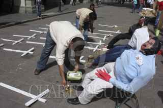 OAXACA, OAXOCA., 06AGOSTO2012.- Integrantes de la organización Comuna Oaxaca encabezados por el diputado Local, Flavio Sosa ex dirigente de la Asamblea Popular de los Pueblos de Oaxaca (APPO) instalaron un plantón frente a Palacio de Gobierno para recriminar al secretario General de Gobierno (Segego), Jesús Martínez Álvarez por no dar solución a 280 conflictos sociales, agrarios y políticos. Además dijo que no es posible que el gobierno del Estado castigue a personas que buscan defender sus tierras y no al ex gobernador Ulises Ruiz, Miguel Ángel Ortega Habib ex secretario de Finanzas y Bulmaro Rito Salinas ex coordinador de Planeación. FOTO: ARTURO PÉREZ ALFONSO /CUARTOSCURO.COM