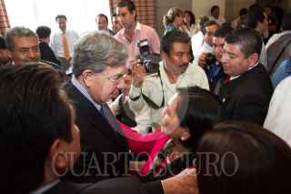 MÉXICO D.F., 07AGOSTO2012.- Cuauhtémoc Cárdenas Solórzano, undador del Partido de la Revolución Democrática (PRD) acompañado de Amalia García, exgobernadora de Zcataecas, al termino de su participación en la sesión Plenaria del Partido de la Revolución Democrática. FOTO: GUILLERMO PEREA /CUARTOSCURO.COM