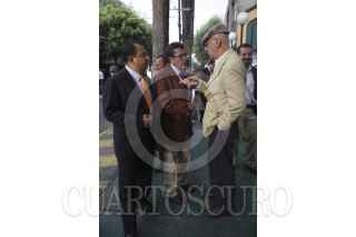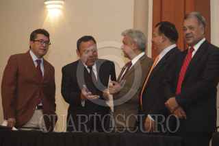 MÉXICO, D.F., 07AGOSTO2012.-Andrés Manuel López Obrador, candidato del Movimiento Progresista a la Presidencia, presentó los diez fundamentos para anular la elección presidencial del 1 de julio pasado. En conferencia de prensa, el tabasqueño fué acompañado por los presidentes de los partidos PRD, Jesús Zambrano, PT, Alberto Anaya, y Movimiento Ciudadano, Luis Walton, así como de Ricardo Monreal. FOTO: JUAN PABLO ZAMORA /CUARTOSCURO.COM