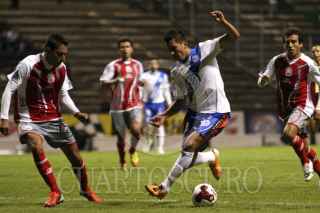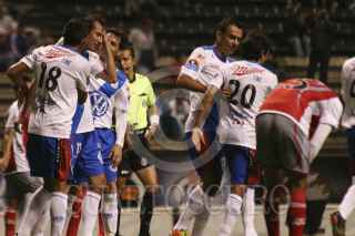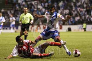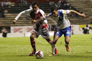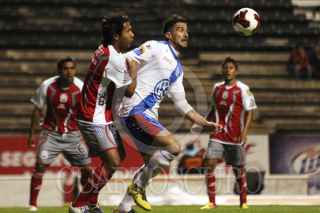 PUEBLA, PUEBLA, 07AGOSTO2012.- Herminio Miranda festeja un gol anotado a favor del equipo de la Franja durante el partido de la tercera jornada de la Copa MX disputado ante los Lobos de la BUAP en el estadio Cuahutémoc. FOTO: HILDA RÍOS /CUARTOSCURO.COM