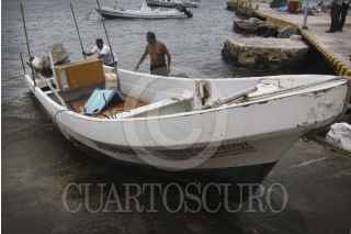VERACRUZ, VERACRUZ., 08AGOSTO2012.- Pescadores y lancheros del puerto iniciaron el retiro de sus pequeñas embarcaciones debido al posible impacto del fenómeno meteorológico "Ernesto", el cual posiblemente ingrese la tarde de este jueves a territorio veracruzano. FOTO: FÉLIX MÁRQUEZ /CUARTOSCURO.COM