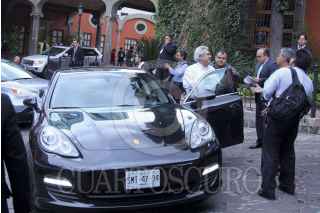 MÉXICO, D.F., 09AGOSTO2012.- José Ascensión Orihuela Bárcenas, ex secretario general de la CTM y senador electo por el estado de Michoacan, se sube a su automóvil de marca Porsche Panamera Turbo S, valuado en 133,500 dólares, a su salida de la reunión que sostuvo con Enrique Peña Nieto, virtual ganador de la contienda presidencial. FOTO: SAÚL LÓPEZ /CUARTOSCURO.COM