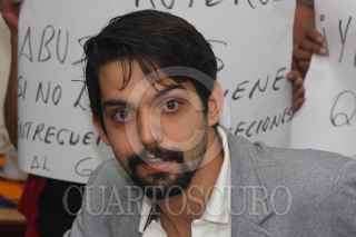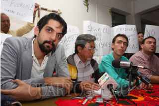CUERNAVACA, MORELOS, 10AGOSTO2012.- Antonio Attonili, vocero del movimiento Nacional #YoSoy132 y estudiante del ITAM, acompañó en rueda de prensa a Gabriel Rivera líder de las Comisión de Colonias en Lucha, quien ayer recibió dos amenazas de muerte por su participación en la promoción en contra de la alza de la tarifa del transporte público, Antolini expresó que se vive un estado mafioso y que los movimientos del centro deben prestar más atención a cada una de a las preocupaciones locales, como lo es la demanda de seguridad a la integridad de Gabriel Rivera. FOTO: ALMA LAFAYET /CUARTOSCURO.COM