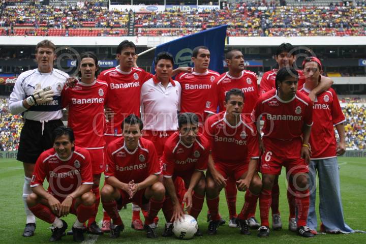 MEXICO, D.F. 17ABRIL2005.- Porra de los diablos rojos del Toluca, durante el encuentro con las águilas del América en el Estadio Azteca. Foto: Sandra Perdomo/CUARTOSCURO.COM