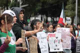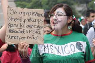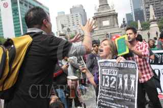 MEXICO, D.F., 11AGOSTO2012.- Simpatizantes del movimiento YO SOY 132 se manifestaron durante los festejos por el triunfo de la selección mexicana de futbol en la final de los Juegos Olímpicos Londres 2012. FOTO: IVÁN STEPHENS /CUARTOSCURO.COM