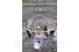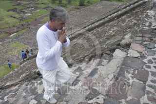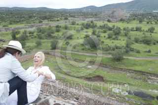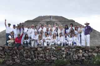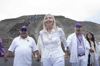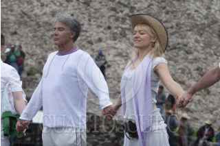 SAN JUAN TEOTIHUACAN, ESTADO DE MEXICO., 11AGOSTO2012.- La producción de Carla Estrada, "Los Doctores" acudió a la zona arqueuológica de Teotihuacán para realizar una ceremonia de carga de energía y buenas vibras, con el fin de que esta nueva producción que esta basado en un "Reality Show" donde Médicos especialistas atenderán las inquietudes del público en general. Durante la ceremonia fue acompañada por el actro Fernando Carrillo y su esposo Oscar del Toro. FOTO: FRANCISCO RODRÍGUEZ / CUARTOSCURO.COM