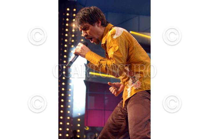 MEXICO, D.F. 17ABRIL2005.- Adrian, integrante del reality show, La Academia, cuarta generación durante su interpretación en el concierto. FOTO: /CUARTOSCURO.COM