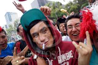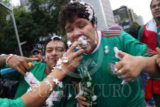 MÉXICO, D.F., 11AGOSTO2012.- Como ya es cotsumbre, cientos de mexicanos se dieron cita en las inmediaciones del Ángel de la independencia para celebrar por la medalla de oro de fútbol ganada en los Juegos Olímpicos de Londres 2012 por la selección. FOTO: PEDRO ANZA /CUARTOSCURO.COM