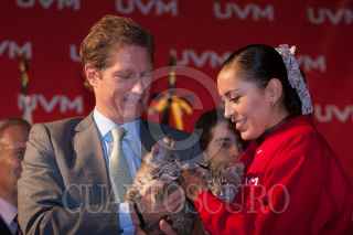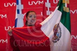 MÉXICO, D.F., 14AGOSTO2012.- La Arquera Aída Román, medalla de Plata en los pasados Juegos Olímpico de Londres 2012, en Tiro de Arco presentó ante los medios de comunicación a los Linces "Aída" y "Román" mascotas de la Institución. La medallista fue homenajeada en su "Alma Mater" además de que se fundo la beca "Aída Román" FOTO: FRANCISCO RODRÍGUEZ /CUARTOSCURO.COM