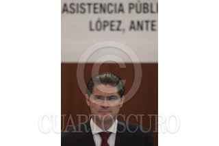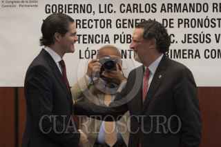 MÉXICO, D.F., 14AGOSTO2012.- Jesús Villalobos López, director general de Pronósticos, compareció ante la primera comisión de la Comisión Permanente en el Senado, la cual fue presidida por el senador priista Rogelio Rueda. El titular de Pronósticos Deportivos se presentó para informar del fraude por más de 100 millones de pesos cometido en el sorteo Melate 2518 del 22 de enero de este año. FOTO: MOISÉS PABLO /CUARTOSCURO.COM