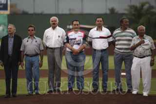 BOCA DEL RÍO, VERACRUZ, 15AGOSTO2012.- Roberto Borge Angulo, gobernador de Quintana Roo y Raúl Salinas de Gortari acudieron al parque de pelota "Beto Ávila" para apoyar a los Tigres de Quintana Roo, los cuales se enfrentaron contra los Rojos del Águila de Veracruz, quienes se encuentran dentro de la Final de la Zona Sur de la Liga Mexicana de Beisbol. FOTO: FÉLIX MÁRQUEZ /CUARTOSCURO.COM