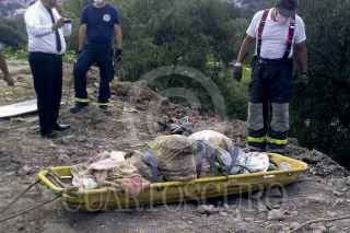 NAUCALPAN, ESTADO DE MÉXICO, 16AGOSTO2012.- El cuerpo al parecer de una mujer identificado por el tipo de zapato con los que fue encontrado, fue hallado envuelto en cobijas y en estado de descomposición en camino Par Vial a San Mateo en el paraje la Palma municipio de Naucalpan. Al lugar arribaron elementos de la policía Ministerial y Bomberos para tomar conocimiento del hallazgo y trasladar el cadáver al anfiteatro de la zona. FOTO: LUIS CARBAYO /CUARTOSCURO.COM