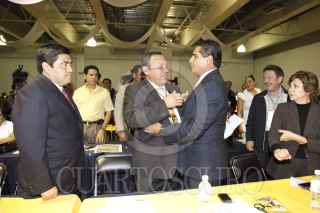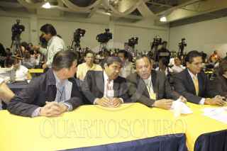 MÉXICO, D.F., 17AGOSTO2012.- Los legisladores electos y coordinadores de las bancadas del PRD, Miguel Barbosa, en el Senado, y Silvano Aureoles, en Diputados, saludan a Jesús Zambrano, presidente Nacional de su Partido, durante su 2o pleno del Consejo Nacional. FOTO: CUARTOSCURO.COM