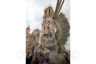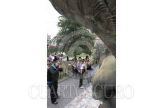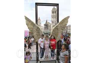 SALTILLO, COAHUILA 19AGOSTO2012.- El proyecto artístico urbano llamado "Alas de la Ciudad" integrado por nueve esculturas de bronce, autoria del escultor Jorge Marín, fué inagurado en la Plaza de Armas y será expuesto hasta el 30 de septiembre. FOTO: KARLA ITZEL RUÍZ /CUARTOSCURO.COM