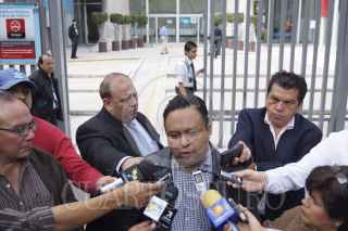MÉXICO D.F., 20AGOSTO2012.- Oscar Romero, vocero de la organización social "El Barzon", es entrevistado a las afueras de la Secretaría de Economíoa, a la cual ingreso para entregar un documento al secretario de economía, C. Bruno Ferrari, en el cual la organización le exige entre otras cosas que "intervenga de inmediato, con medidas para regular el mercado del huevo y de otros productos básicos, para evitar que los problemas de producción se conviertan en una grave crisis para los sectores de la población de menores ingresos". FOTO: PEDRO ANZA /CUARTOSCURO.COM