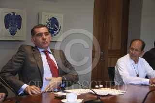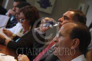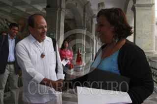 OAXACA, OAXACA, 20AGOSTO2012.- Alejandro Solalinde Guerra fundador del albergue "Hermanos en el Camino" sostuvo una reunión con el gobernador del Estado, Gabino Cué y demás funcionarios estatales para analizar la situación de su seguridad. Dicha mesa se realizó en el Palacio de Gobierno. FOTO: ARTURO PEREZ ALFONSO /CUARTOSCURO.COM