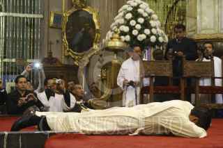 PUEBLA, PUEBLA, 21AGOSTO2012.-Seminaristas y laicos recibieron la orden del diaconado de manos del monseñor Víctor Sánchez Espinosa durante misa la mañana de hoy. FOTO: HILDA RÍOS /CUARTOSCURO.COM