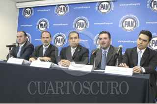 MÉXICO, D.F. 21AGOSTO2012.-Luis Alberto Villareal, próximo líder de la Bancada del PAN, Juan Manuel Oliva, lider local del Blanquiazul, y Federico Doring, próximo lider de los blanquiazules en la Asamblea Local, acompañado de Jorge Romero, jefe delegacional electo, en conferencia de prensa donde se presentó a Doring como coordinador localk de los diputados panistas. FOTO: CUARTOSCURO.COM