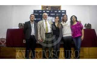 MÉXICO, D.F., 22AGOSTO2012.- Carlos Adolfo Gutiérrez, director del Colegio de Comunicación de la Universidad Claustro de Sor Juana, Mario Brunfman, director de la Fundación Ford, Carolina Coppel, directora Ambulante Más Allá, Elena Cortés, directora general de Ambulante, María Ines Roqué, coordinadora académica de Ambulante Más Allá, participaron en conferencia de prensa en la primera clausura de la primera edición de "Ambulante Más Allá", en el cual se presentarán diez documentales producidos por jóvenes directores de Yucatán, Campeche, Chiapas y Guatemala, en la Universidad del Claustro de Sor Juana. FOTO: KARINA OCHOA /CUARTOSCURO.COM