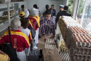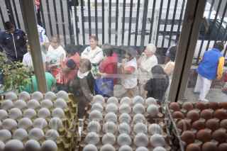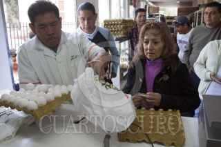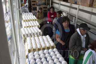 MÉXICO, D.F., 22AGOSTO2012.- A través del programa "La Central de Abastos en tu colonia" se ha puesto la venta de huevo en $20 pesos el kilo en colonias populares de delagación colonia Iztapalapa, esto fue aprovechado por los ciudadanos para adquirir el blanquillo a un precio considerablemente más barato a como lo dan en tiendas minoristas y centros comerciales, cuyo precio oscila entre los $38 o $40 pesos. Por la mañana autoridades del gobierno del DF dieron el banderazo de salida del trailer con el producto. El día de hoy le toco a los vecinos de la unidad habitacional Albarrada ubicada en la calle de Batallones casi esquina con Gama y Soto de la delegación iztapalapense. FOTO: MOISÉS PABLO /CUARTOSCURO.COM