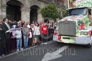 MÉXICO, D.F., 22AGOSTO2012.- Marcelo Ebrard Casaubón, Jefe de Gobierno, dio el banderazo de salida del trailer "La Central de Abastos en tu colonia" en cuyo interior llevaba cinco toneladas de huevo el cual fue puesto a la venta en colonias populares a $20 pesos el kilo, esto ante el alza desmedida del blanquillo. FOTO: MOISÉS PABLO /CUARTOSCURO.COM