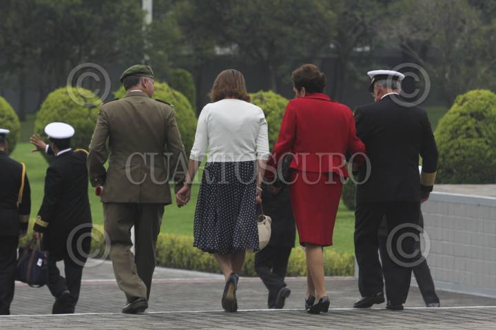 MÉXICO, D.F. 22AGOSTO2012.- Una militar acomoda los tocados de los almirantes que acudieron a al condecoración de Mariano Francisco Saynez Mendoza, Secretario de Marina Armada de México, con la medalla de la Asociación de Agregados Militares Navales Aéreos en grado maximo distinguido que otorga dicha asociación. FOTO: SAÚL LÓPEZ /CUARTOSCURO.COM