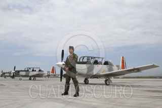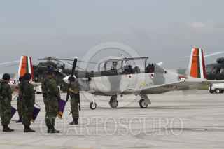 TECAMAC, ESTADO DE MÉXICO, 22AGOSTO2012.- En la Base Aérea Militar No. 1, se realizó la ceremonia de recepción de cuatro aeronaves T-6C “Texan II”, que serán utilizadas con fines tácticos, apoyo aéreo cercano, apoyo directo por el fuego, reconocimiento armado y escolta aérea, FOTO: GUILLERMO PEREA /CUARTOSCURO.COM