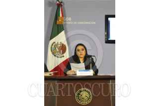 MÉXICO, D.F., 22AGOSTO2012.- Alejandra Sota, vocera de la Presidencia de la República, ofreció una conferencia de prensa en respuesta a las conversaciones dadas a conocer por Joaquín Vargas, presidente del consejo de administración de la empresa, la funcionaria dijo que el gobierno federal nunca trató de limitar la libertad de expresión de Carmen Aristegui. Sota afirmó que Joaquín Vargas fue el responsable de solicitar la renuncia de la periodista Carmen Aristegui, y que el diferendo por la banda 2.5 gigahertz se basa únicamente en que el empresario no quiere pagar los 27 mil millones de pesos. FOTO: IVÁN MENDEZ /CUARTOSCURO.COM