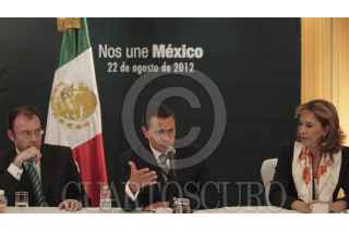 MÉXICO, D.F. 22AGOSTO2012.- Enrique Peña Nieto, virtual candidato ganador de los comicios presidenciales, acompañado de Lusi Videgaray, sostuvo una reunión con integrantes de Organizaciones No Gubernamentales. FOTO: CUARTOSCURO.COM