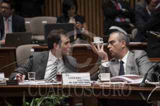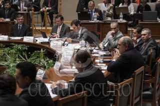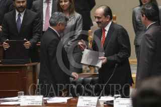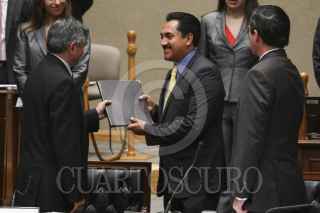 MÉXICO, D.F., 23AGOSTO2012.- En la Sesión Extraordinaria del Consejo General del IFE, se dieron a conocer la distribución de diputados y senadores plurinominales. Ademas El presidente Concejero definió la elección del 1 de Julio como el rumbo que lo mexicanos decidieron y depositaron ejercerlo en el poder legislativo. En la imagen el presidente Consejero, Leonardo Valdez Zurita le entrega su constancia al perredista Camerino Marquez. FOTO: IVÁN MENDEZ /CUARTOSCURO.COM