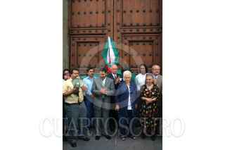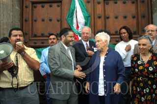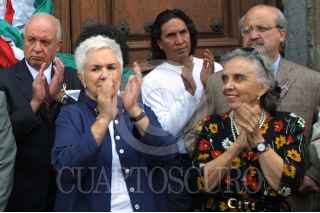 MEXICO D.F 20 ABRIL 2005.- Intelectuales y perredistas se manifestaron en Palacio Nacional en contra del desafuero que le fue impuesto a Andres Manuel López Obrador. FOTO: Eunice Adorno_CUARTOSCURO.COM