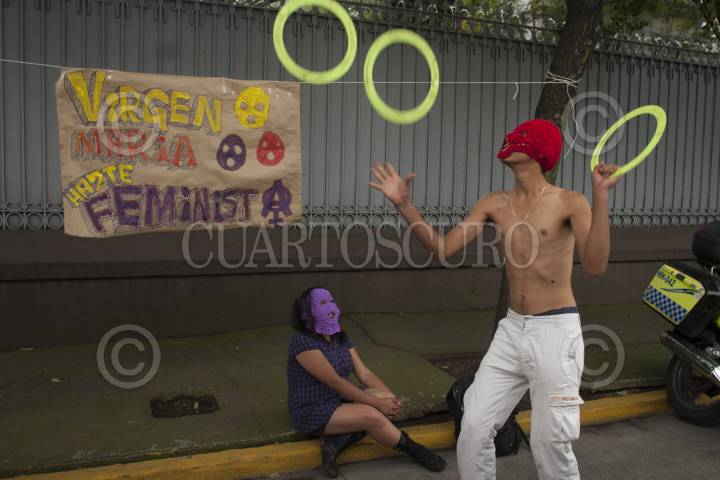 MÉXICO, D.F., 24AGOSTO2012.- El vocalista de "Patitos Punk" Orgy punk simuló una misa, se crucificó y quemó carteles con los nombre de Nicolas Zarkosy, presidente de Francia, Vladimir Putin presidente de Rusia y Enrique Peña Nieto candidato del PRi a la presidencia de la república en la reciente elección presidencial. FOTO: FRANCISCO RODRÍGUEZ /CUARTOSCURO.COM