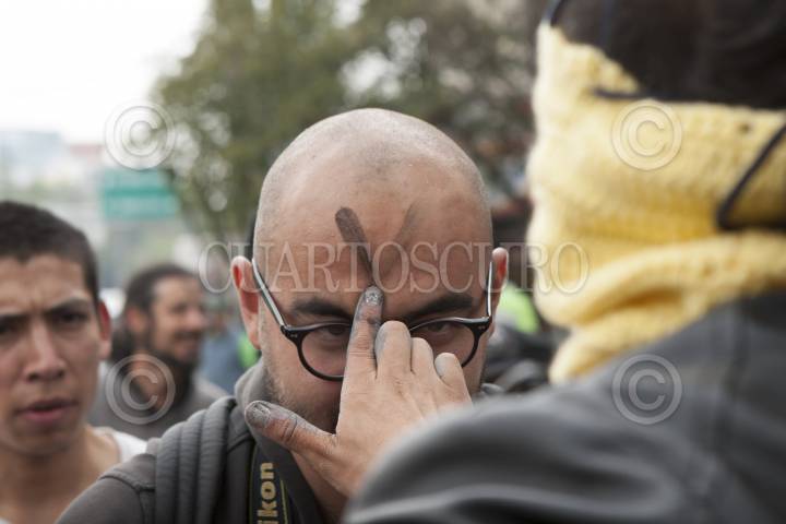 MÉXICO, D.F., 24AGOSTO2012.- El vocalista de "Patitos Punk" Orgy punk simuló una misa, se crucificó y quemó carteles con los nombre de Nicolas Zarkosy, presidente de Francia, Vladimir Putin presidente de Rusia y Enrique Peña Nieto candidato del PRi a la presidencia de la república en la reciente elección presidencial. FOTO: FRANCISCO RODRÍGUEZ /CUARTOSCURO.COM