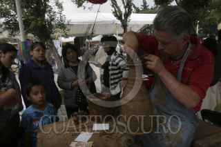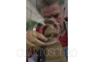 MÉXICO, D.F., 25AGOSTO2012.- Un alfarero muestra a la gente que asistió a feria "Hidalgo en el DF" como se hacen vasijas con el torno, la festividad se realizó en el Monumento a la Revolución. FOTO: JUAN PABLO ZAMORA /CUARTOSCURO.COM