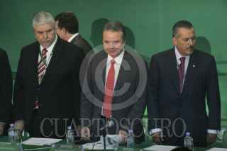 MÉXICO D.F., 27AGOSTO2012.- Los diputados priístas electos de la LXIII legislatura llevaron a cabo su primera plenaria en San Lázaro, encabezada por Pedro Joaquín Coldwell, presidente de ese partido, y Manlio Fabio Beltrones, próximo coordinador de su bancada en la cámara baja. FOTO: JUAN PABLO ZAMORA /CUARTOSCURO.COM