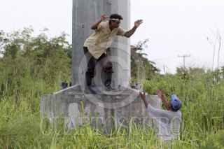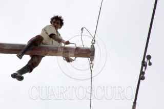 CANCÚN, QUINTANA ROO, 27AGOSTO2012.- Quien padece de sus facultades mentales, permaneció por casi 6 hrs. en la punta de un poste de la CFE a casi 40 metros de altura que es usado para los cables de alta tensión. EL hombre bajo y salió ileso. FOTO: CSPHOTO /CUARTOSCURO.COM