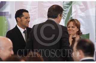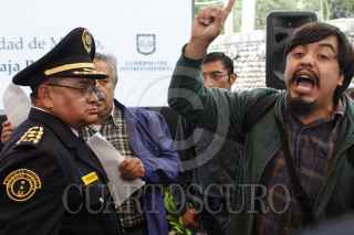 MÉXICO D.F., 28AGOSTO2012.- Ejidatarios de San Nicolas Totolapan, protestaron al termino del evento del informe final del Programa de Acción Climática de la Ciudad de México 2008 - 2012 que se realizó en el Bosque de Chapultepec en donde denunciaron que las obras de la Supervía Poniente están afectando a zonas protegidas del Ajusco ya que hasta ahí tiran el cascajo y desechos de la construcción. FOTO: RODOLFO ANGULO /CUARTOSCURO.COM