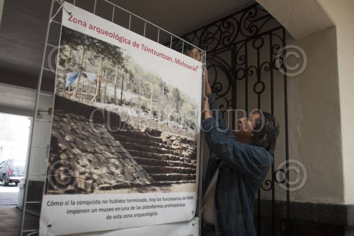 MÉXICO, D.F., 29AGOSTO2012.- El movimiento por la defensa del Instituto Nacional de Antropología e Historia y de los bienes Arqueológicos, Históricos y Culturales de la Nación ofreció una conferencia de prensa para denunciar la construcción de un museo sobre las ruinas de la zona arqueológica de Tzintzuntzan en el estado de Michoacán, en voz del Maestro Felipe Echenique, Secretario General del Comite Ejecutivo del Sindicato de Académicos quien tambien denunció que la denuncia que interpuso el INAH ante la PGR por daños es considerada como un argumento político más que legal para frenar el movimiento. FOTO: FRANCISCO RODRÍGUEZ / CUARTOSCURO.COM