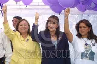 MEXICO, D.F. 21ABRIL2005.- Relevo en Los Pinos, la senadora Leticia Burgos iniciò el ayuno este dìa donde acudió Yeidckol Polensky y la jefa delegaciòn en Cuauhtemoc, Virginia Jaramillo, al igual que el Presidente nacional del PRD, FOTO: Oscar Lòpez/CUARTOSCURO.COM