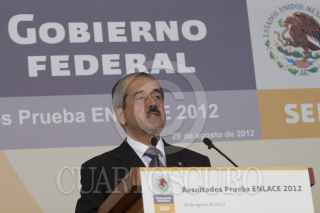 MÉXICO, D.F., 29AGOSTO2012.- José Ángel Córdova Villalobos, secretario de Educación Pública, presentó la entrega de los resultados de la "Prueba Enlace 2012" en la sede de la SEP. FOTO: MOISÉS PABLO /CUARTOSCURO.COM